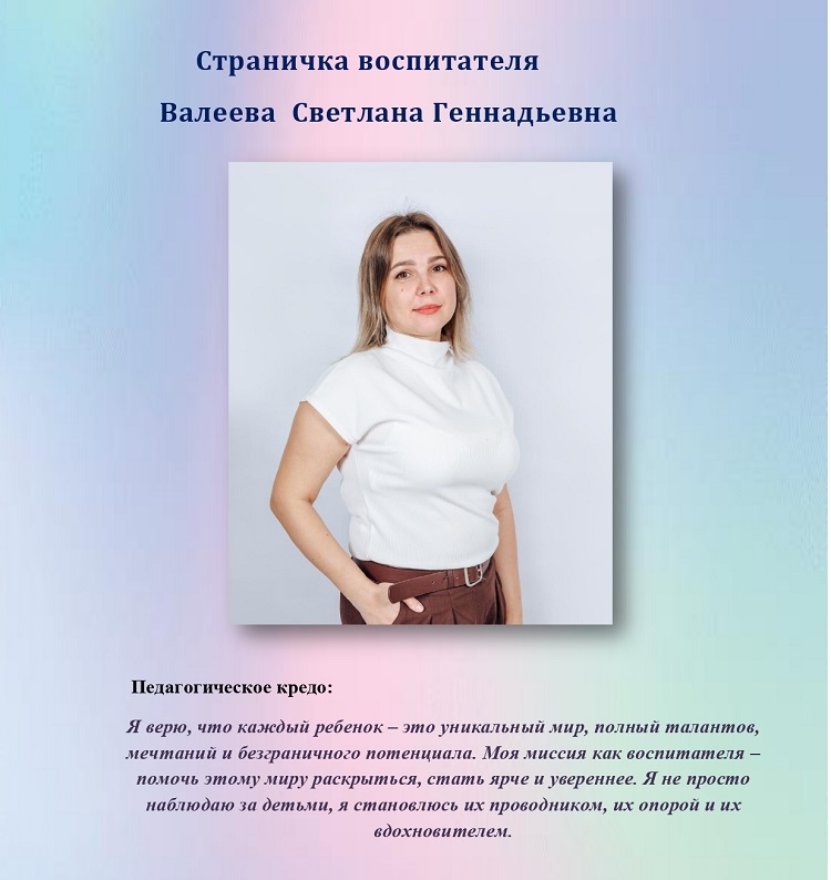Страничка воспитателя Валеева Светлана Геннадьевна